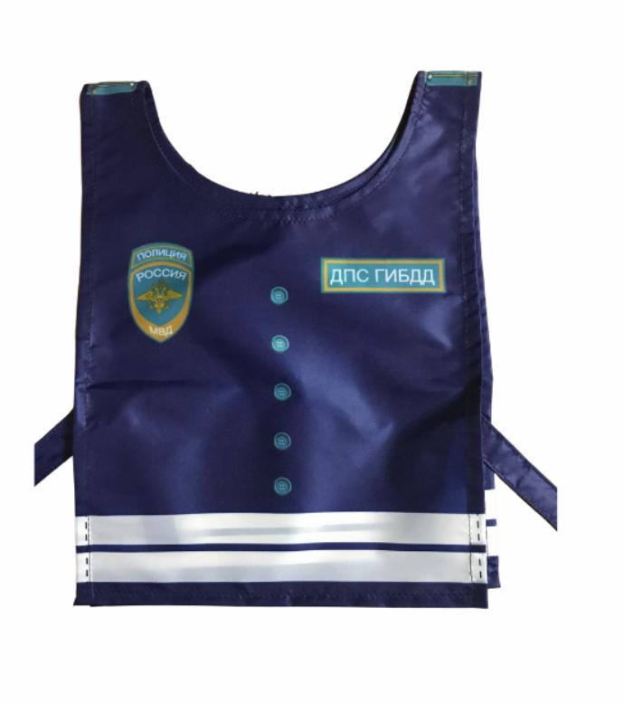1. Жилет ролевой: Инспектор ДПС - 1 шт - предназначен для знакомства детей с профессией инспектора ДПС и создания дорожных ситуаций. Цвет жилета как у формы настоящего инспектора!