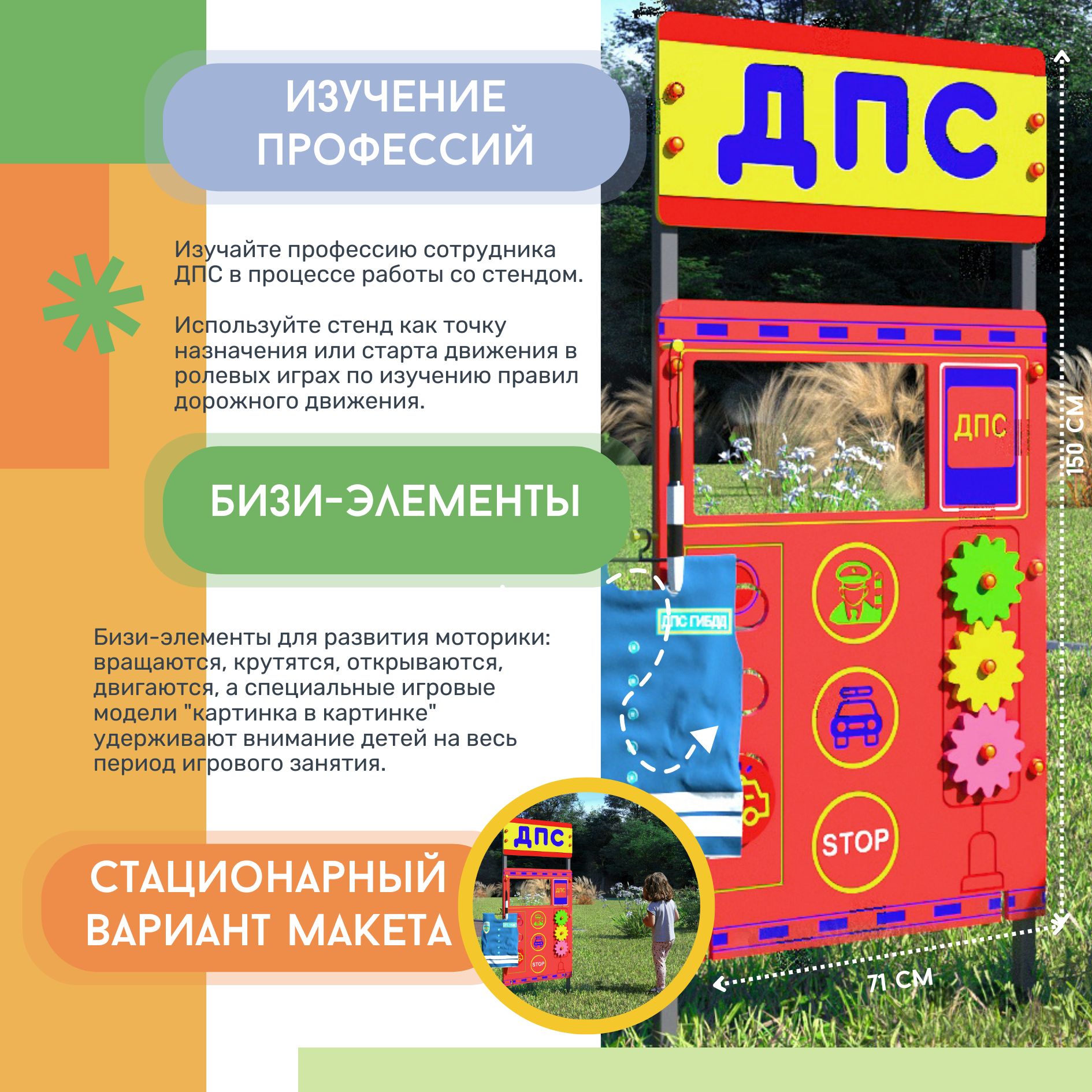 Со стационарным комплектом профессии "Сотрудник ДПС" дети познакомятся с основами работы этой специальности. Игра с комплектом развивают моторику, память, воображение и умение строить причинно-следственные связи!