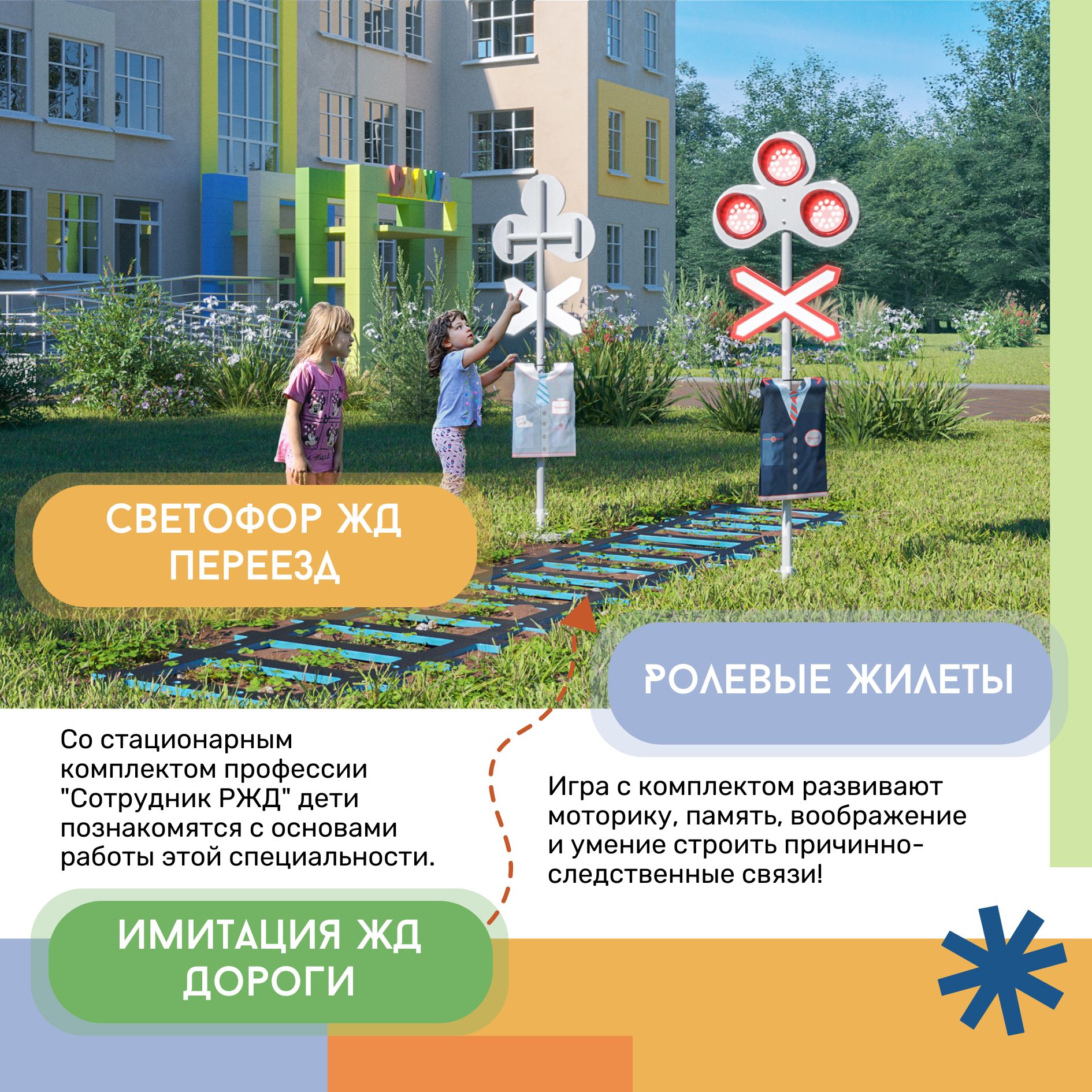 Со стационарным комплектом профессии "Сотрудник РЖД" дети познакомятся с основами работы этой специальности. Игра с комплектом развивают моторику, память, воображение и умение строить причинно-следственные связи!