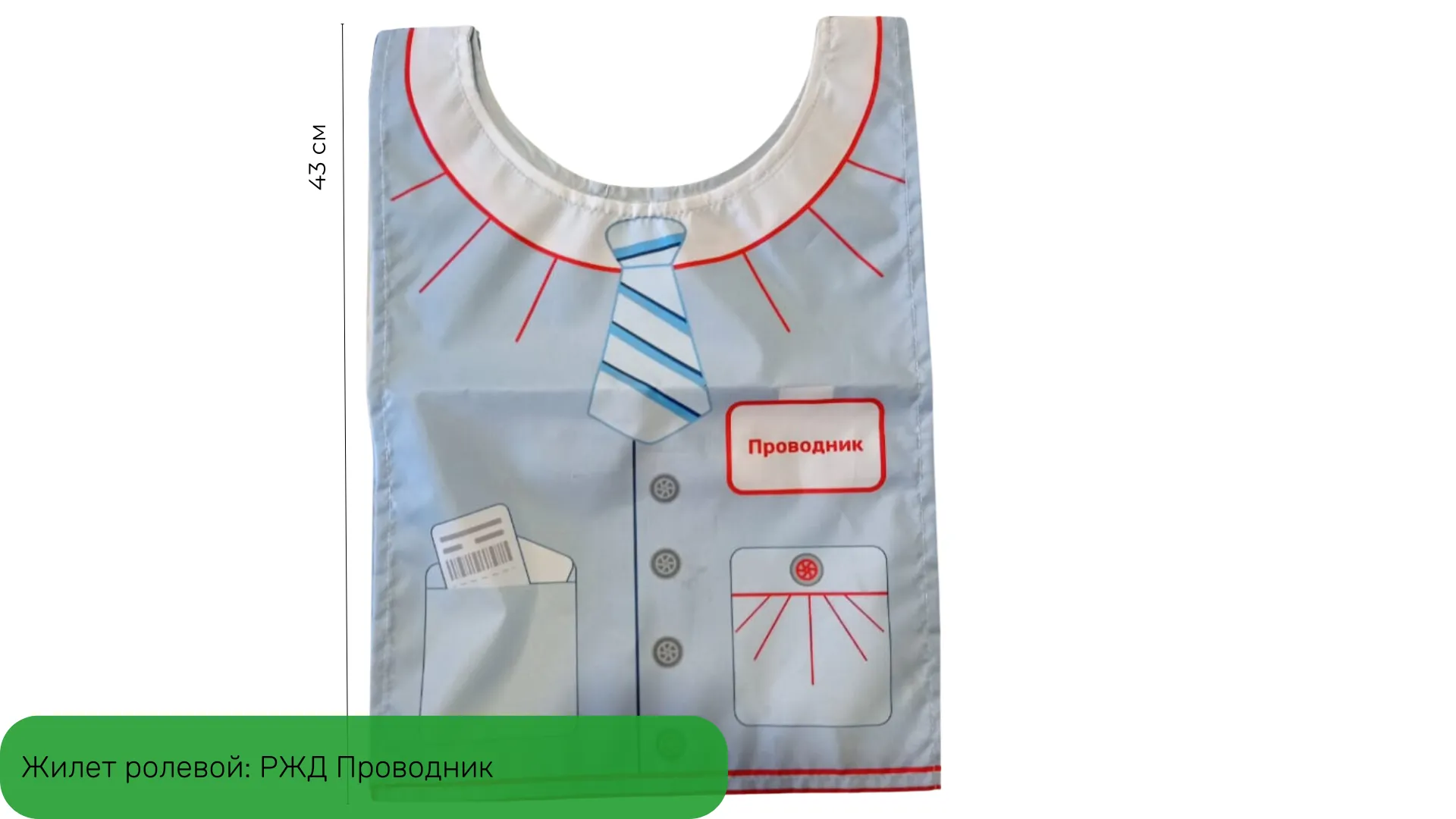3. Жилет ролевой: РЖД Проводник - предназначен для создания множества ситуаций на железнодорожных путях. Жилет удобен для самостоятельного использования детьми, так как застёгивается на липучки.