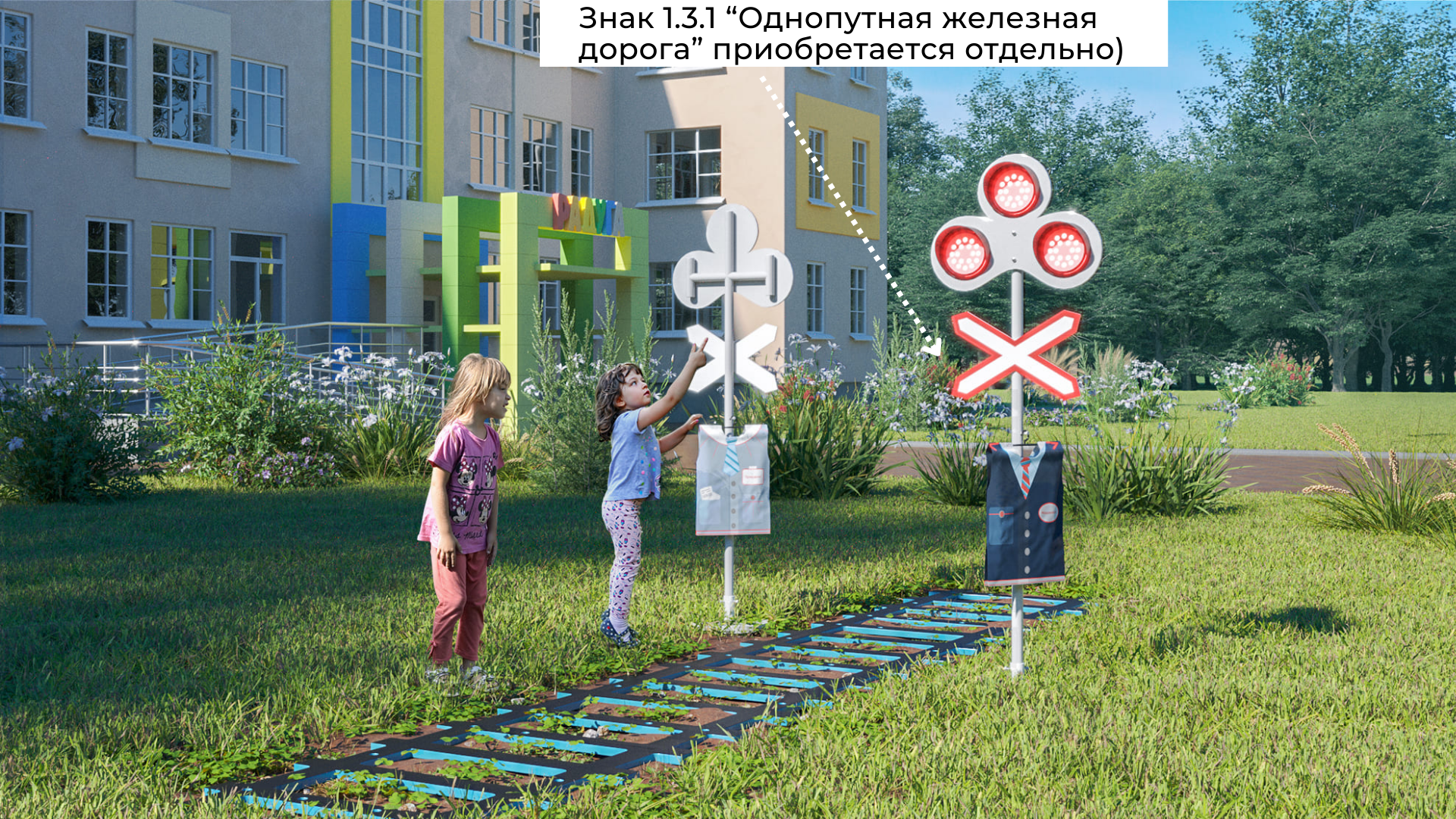 2. Макет "Железнодорожный переезд" учебный - позволяет создавать дорожные ситуации с железнодорожным переездом! К железной дороге вы так же можете приобрести светофор ЖД переезд трехсигнальный.
