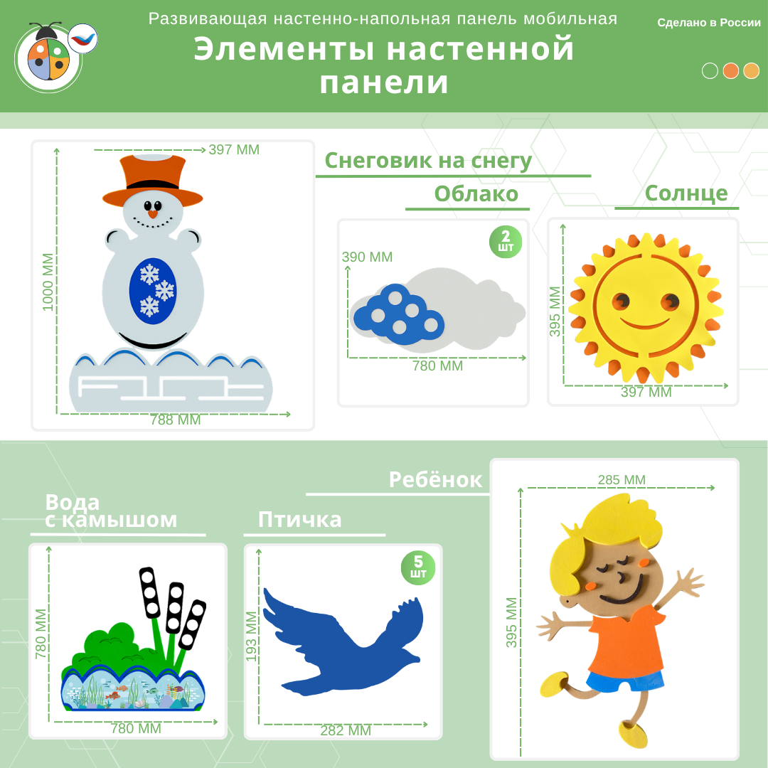 Приобретая развивающую настенно-напольную панель мобильную "Окружающая среда" макси с ковриком, комплект, вы получаете: