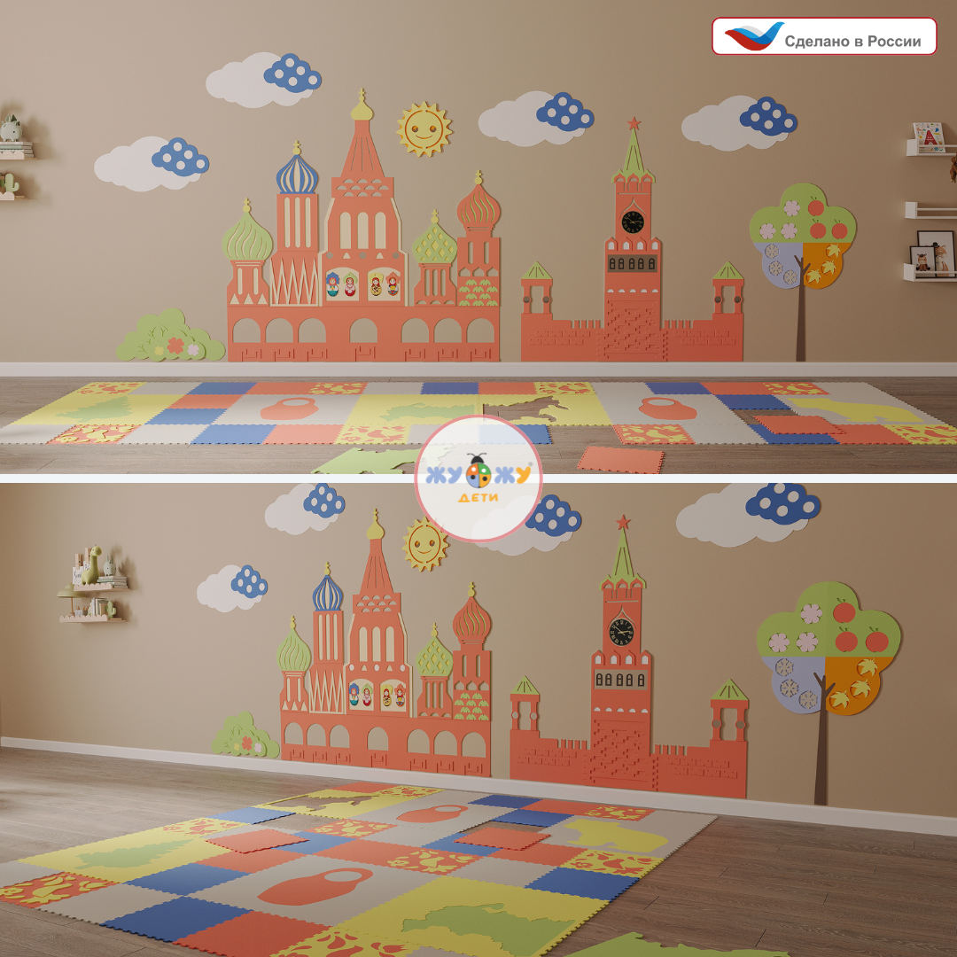 Развивающая настенно-напольная панель мобильная "Патриотические символы" макси, комплект с ковриком