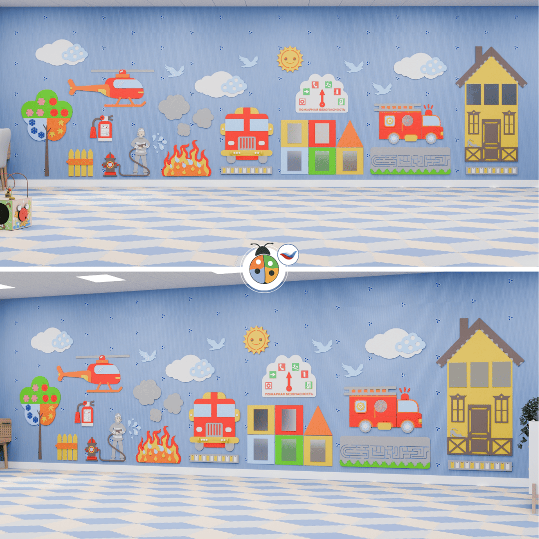 Развивающая настенно-напольная панель "Пожарная безопасность" — это отличный инструмент для обучения детей основам пожарной безопасности в игровой форме.