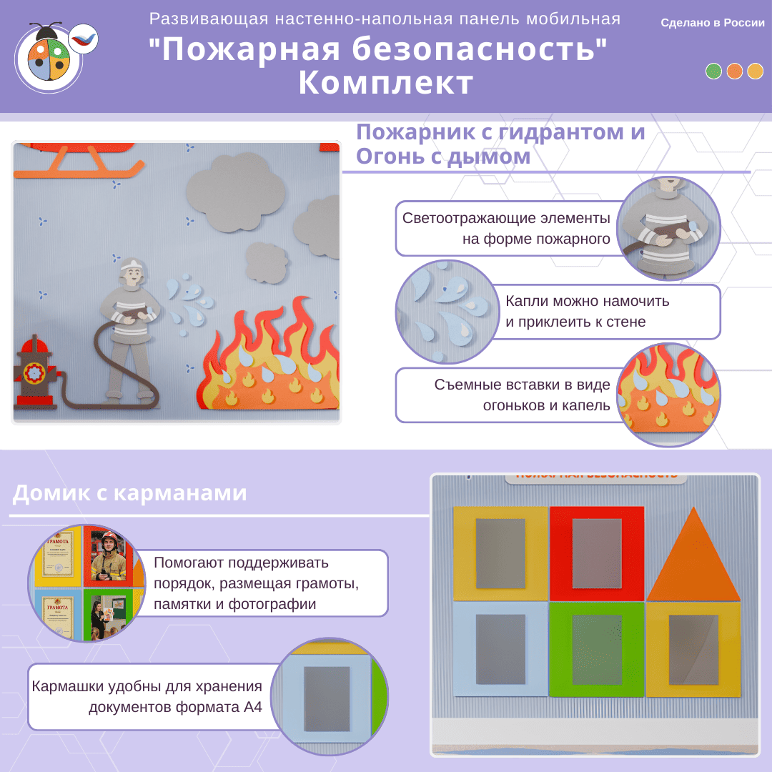 Развивающая настенная панель мобильная "Пожарная безопасность", комплект