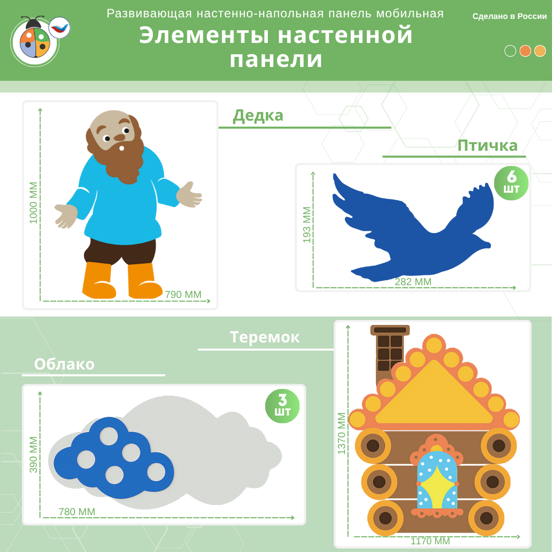 Приобретая развивающую настенно-напольную панель мобильную "Серия сказки: Колобок", комплект с ковриком (ЖУ-ЖУ-НП9900), вы получаете: