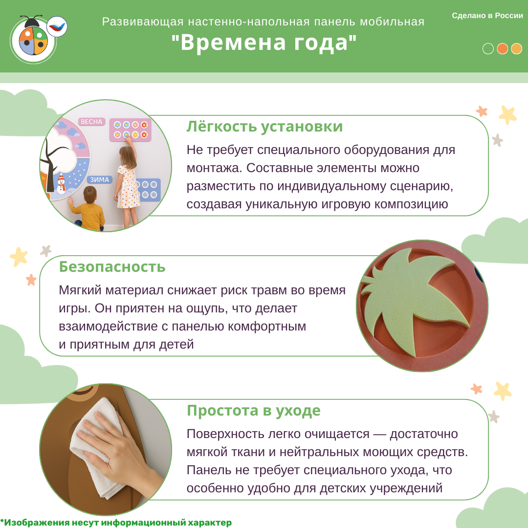 Приобретая развивающую настенно-напольную панель мобильную "Времена года", комплект (ЖУ-ЖУ-НП9000), вы получаете: