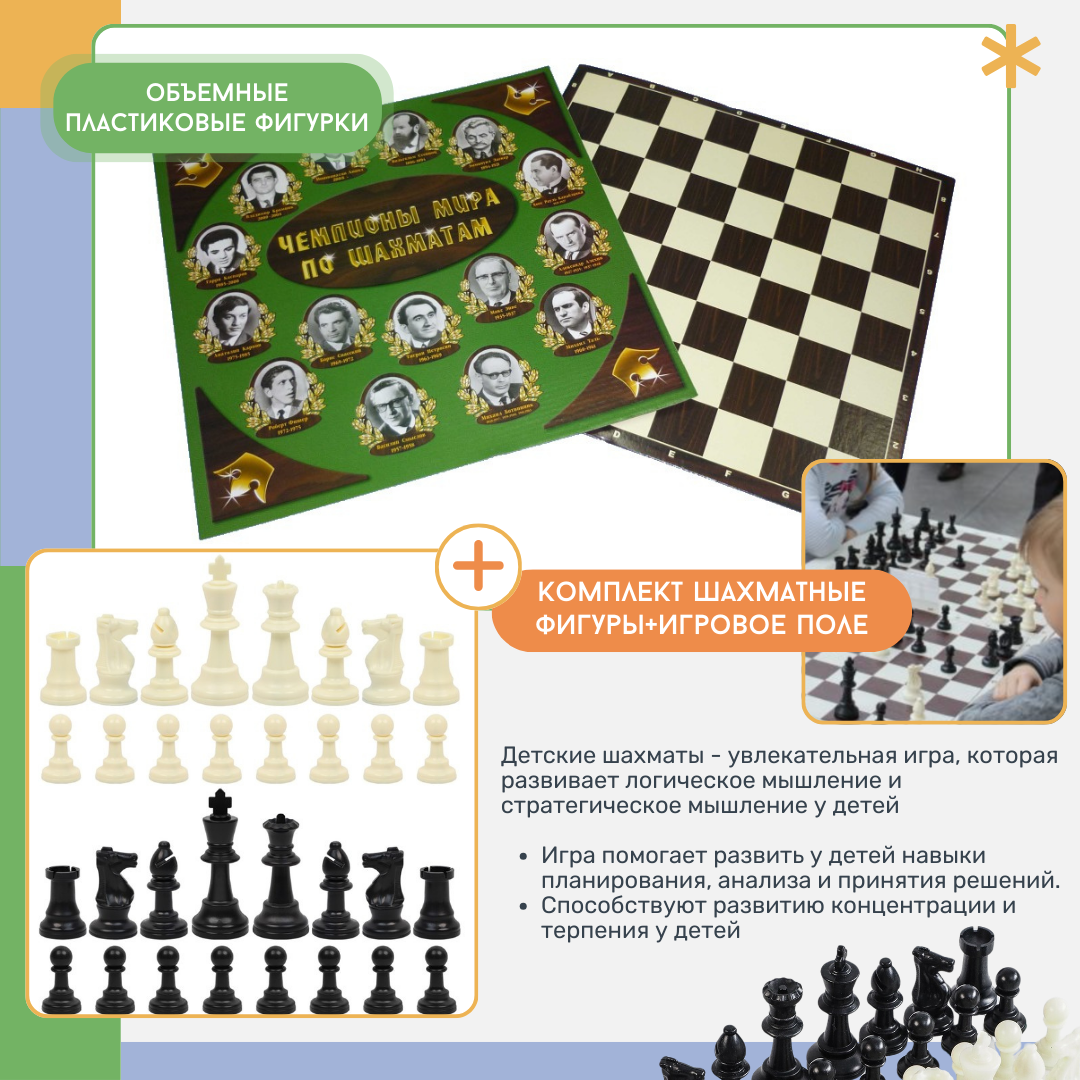 Классические настольные шахматы с объемными фигурами и шахматной доской из микрогофрокартона идеально подходят для занятий в кружках и на уроках по шахматам, в свободное внеурочное время. Шахматы компактные и их удобно брать с собой.