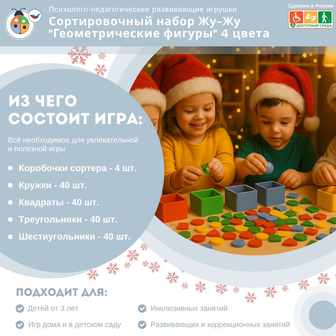 Приобретая "Сортировочный набор Жу-Жу "Геометрические фигуры" 4 цвета" (ЖУ-ЖУ-ФП0029), вы получаете: