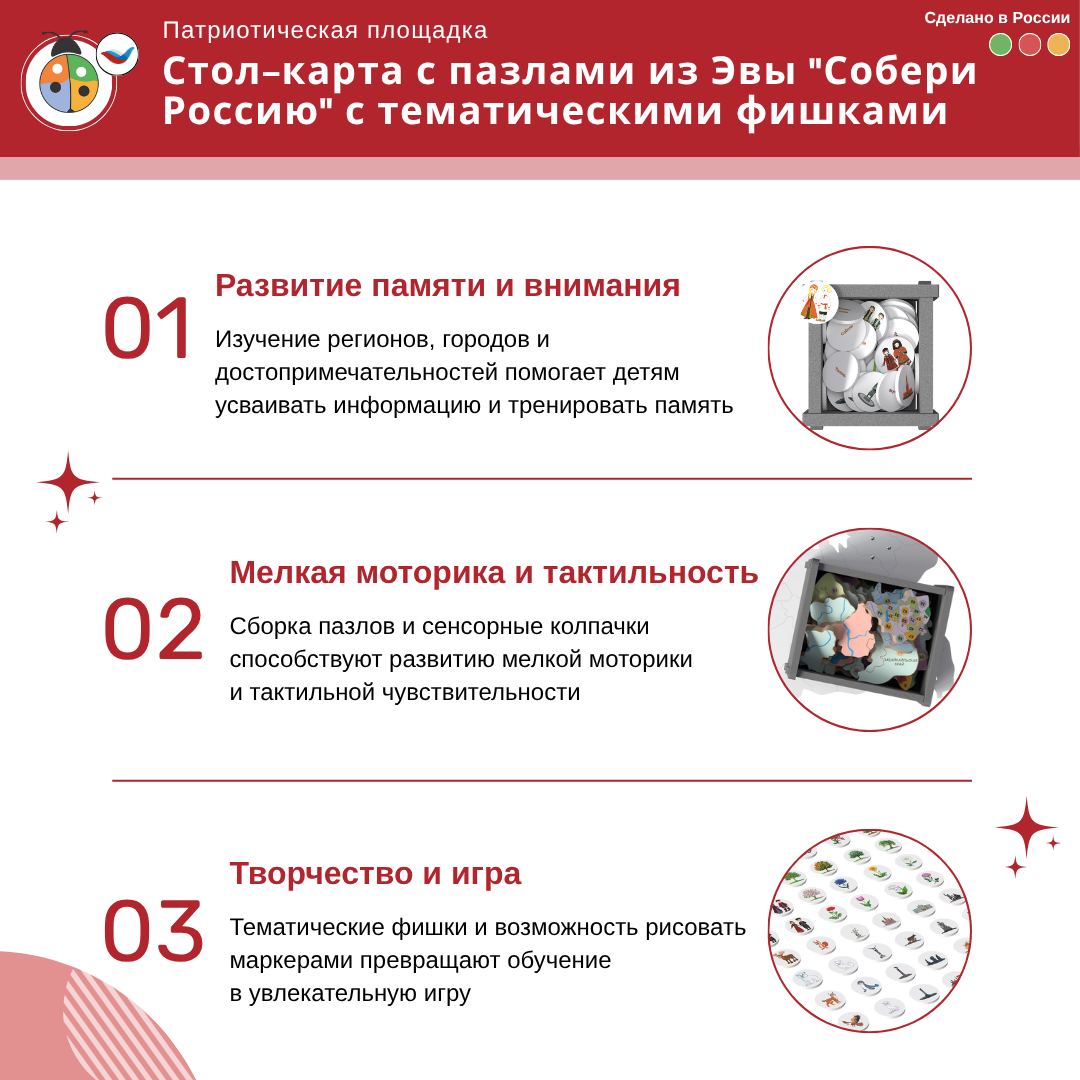 Стол-карта с пазлами из Эвы "Собери Россию" с тематическими фишками