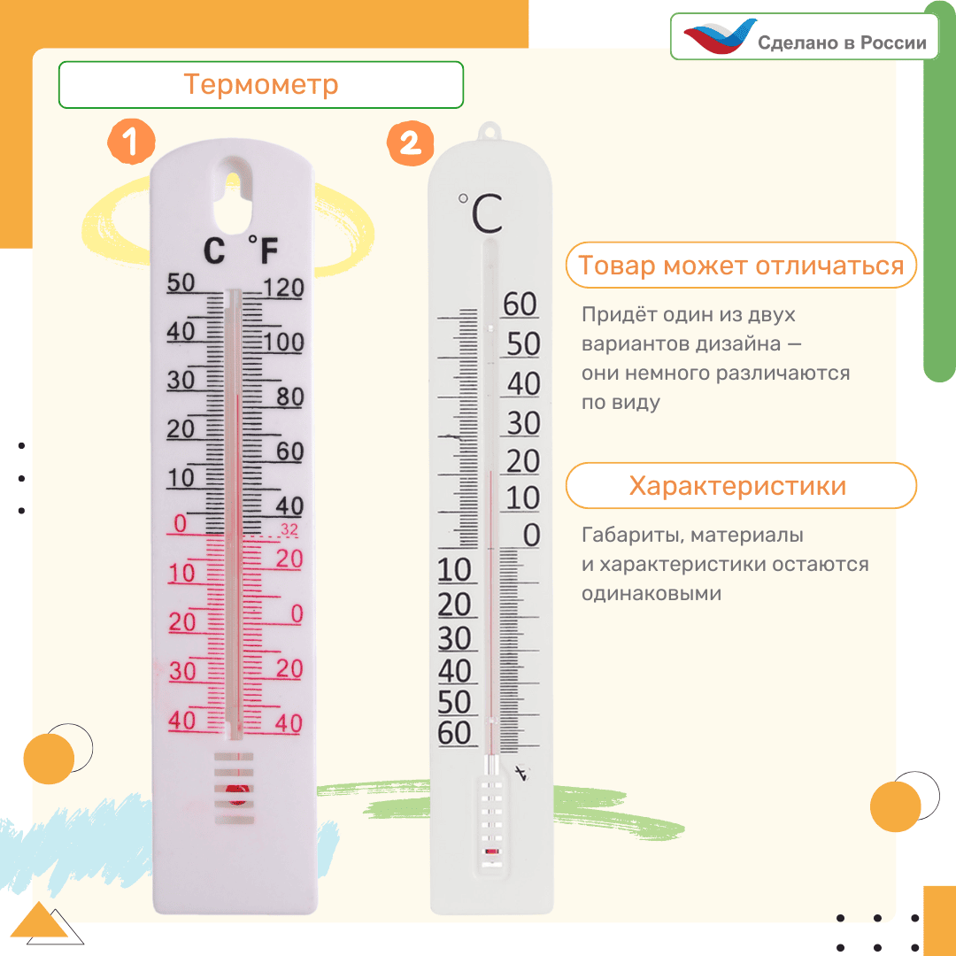 Прибор для измерения температуры воздуха. Метеоприбор хранится в метеобудке, которую можно приобрести в нашем интернет-магазине. Не содержит ртуть. Термометр безопасен для использования детьми!