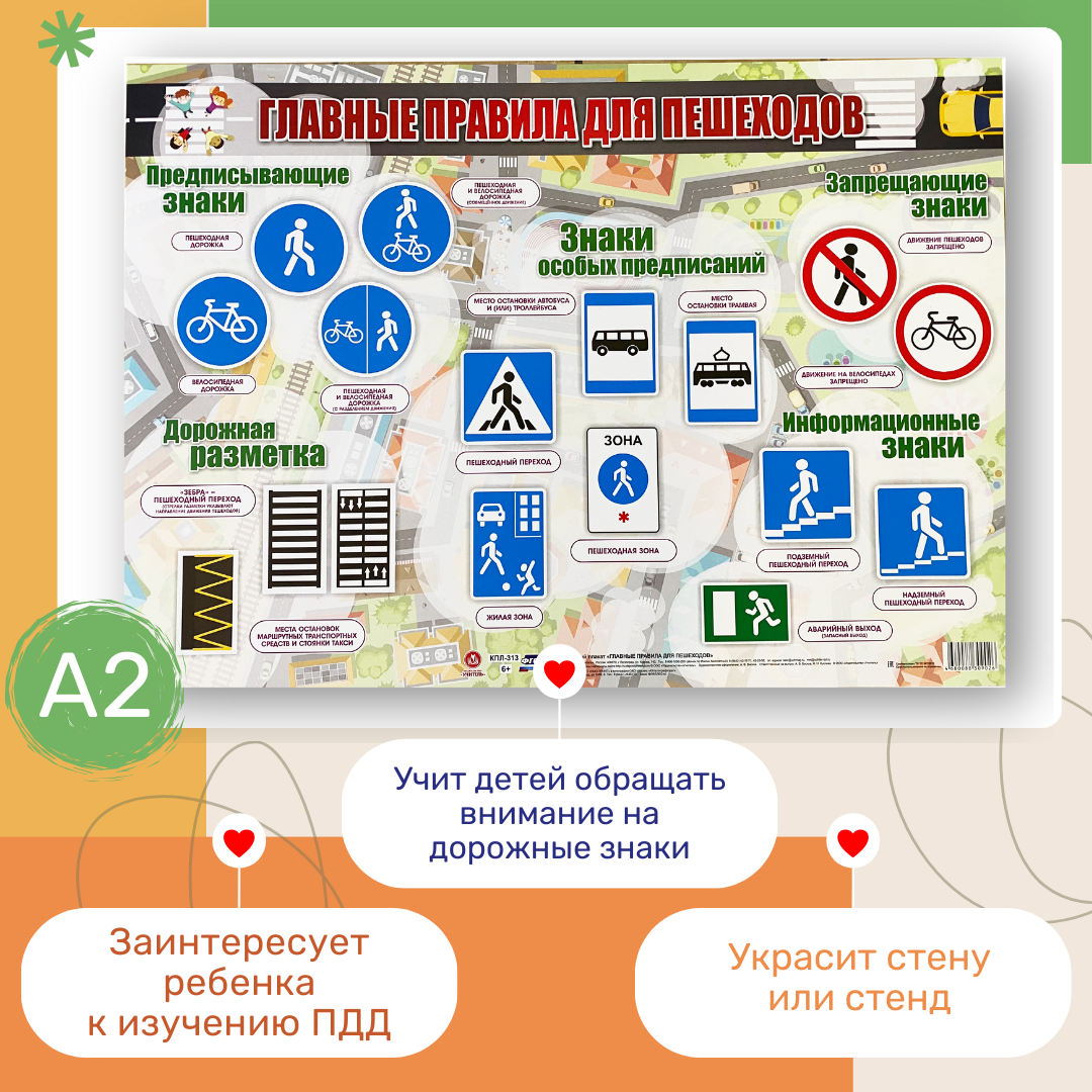 Учебно-методический плакат "Дорожные знаки пешеходу" - 1 шт