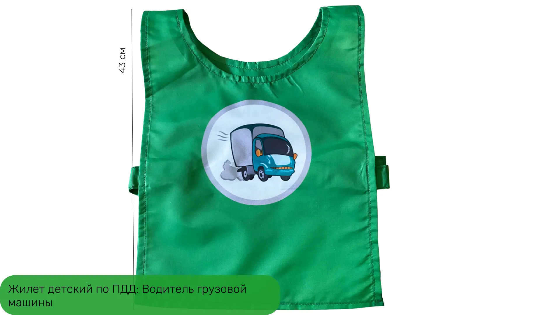 4. Жилет детский по ПДД: Водитель грузовой машины - необходим для занятий с автогородком, т.к. они позволяет создавать дорожные ситуации с участниками дорожного движения. Жилет имеет яркий и привлекательный дизайн! Удобен для самостоятельного использования детьми, так как застёгивается на липучки.