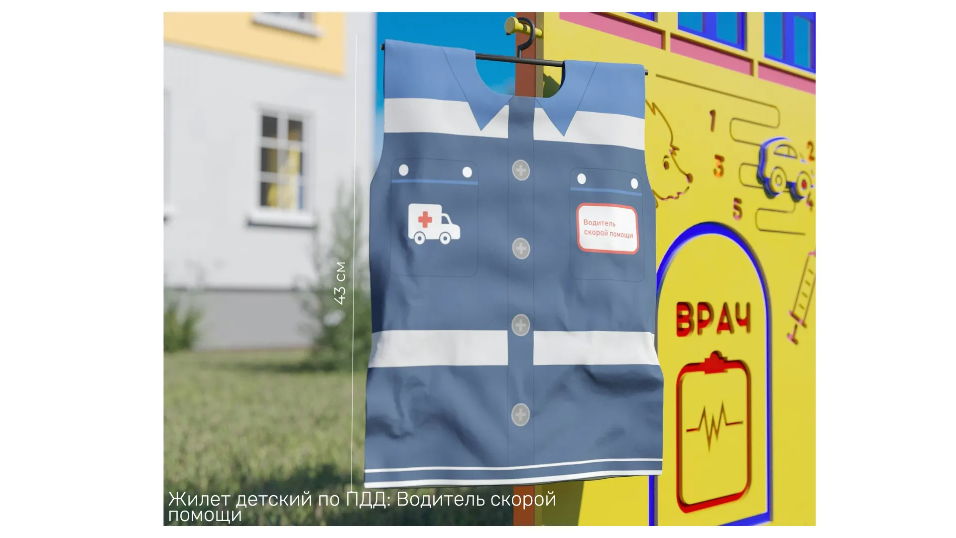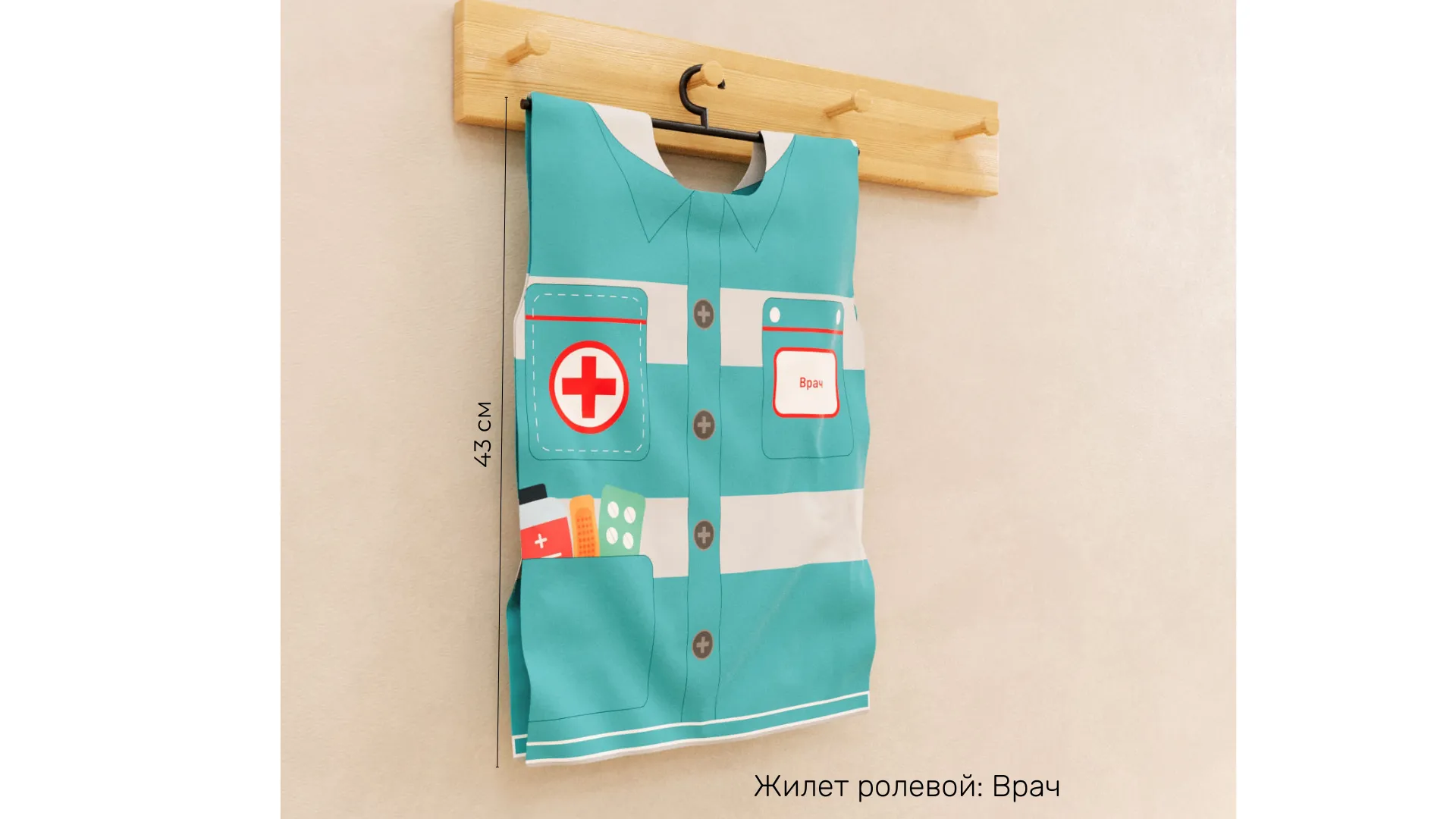 3. Жилет ролевой: Врач - предназначен для знакомства с профессией врач. Жилет удобен в самостоятельном использовании детьми, застёгивается на липучки.