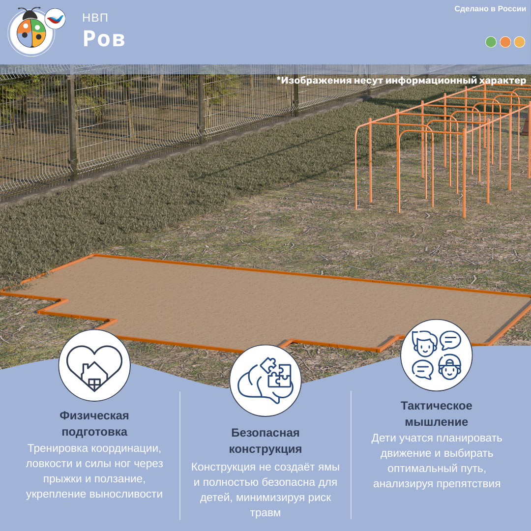 Уличное препятствие для НВП и ОБЖ "Ров" используется в качестве элемента для переползания, прыжков.