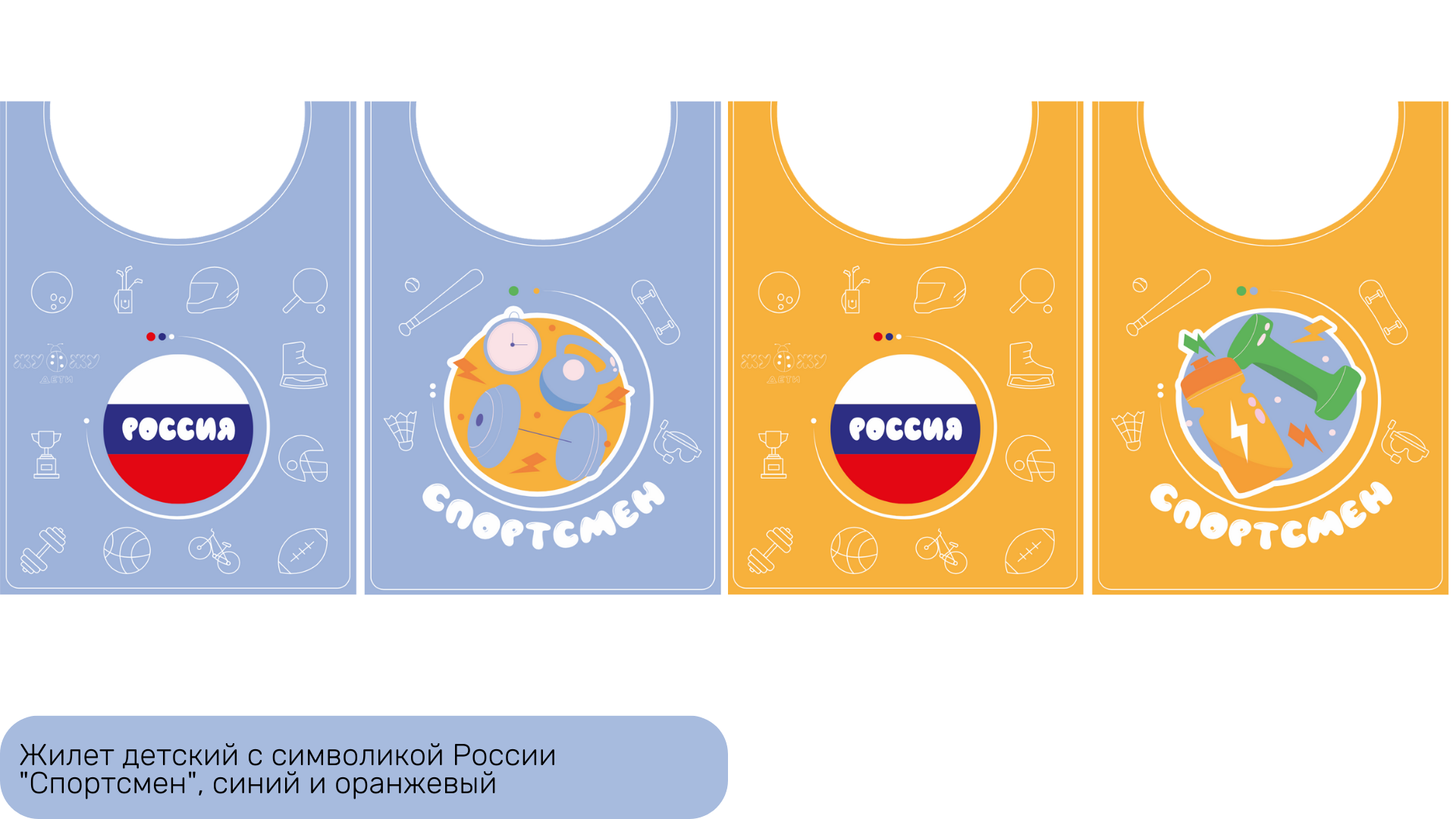Жилет может применяться в соревнованиях между командами, для команды соперника используется Жилет детский с символикой России "Спортсмен", синий.