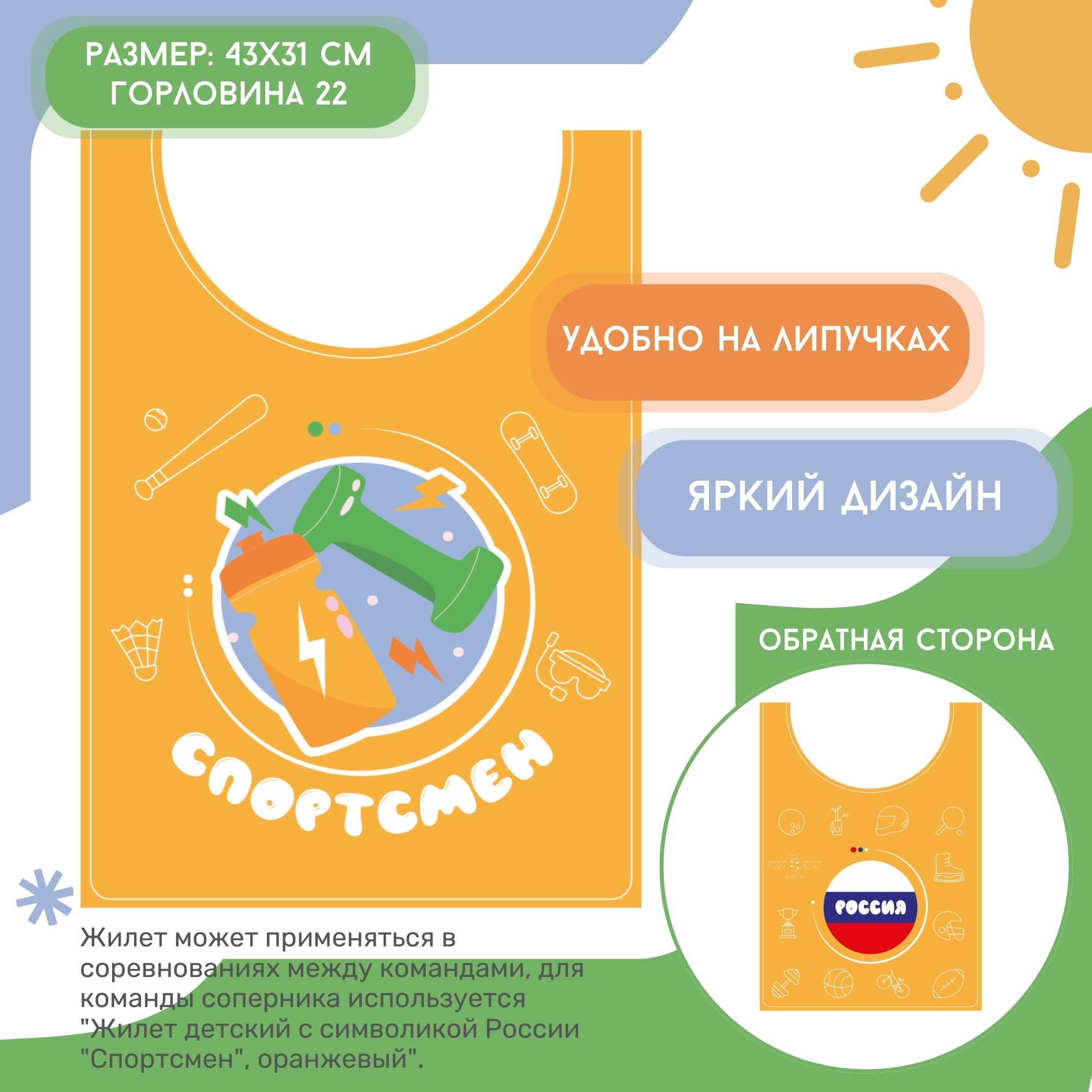Жилет детский с символикой России "Спортсмен", оранжевый - 1 шт..