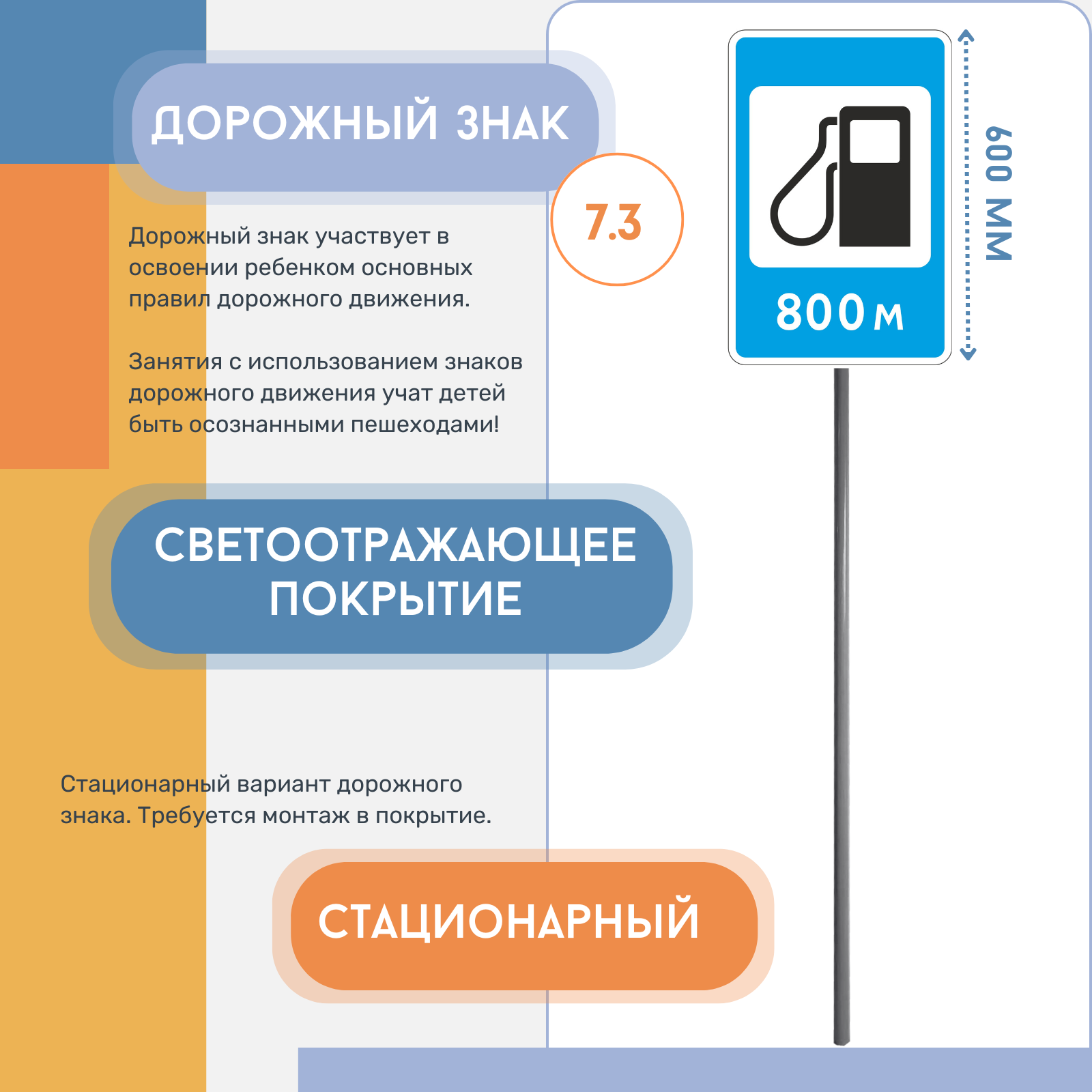 Знак дорожный "Автозаправочная станция" 7.3 стационарный на столбе светоотражающий