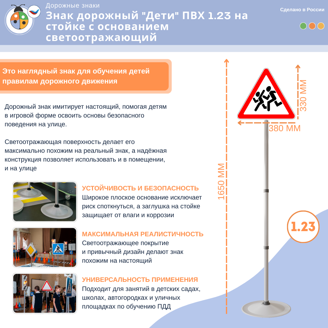 Знак дорожный "Дети" ПВХ 1.23 на стойке с основанием светоотражающий