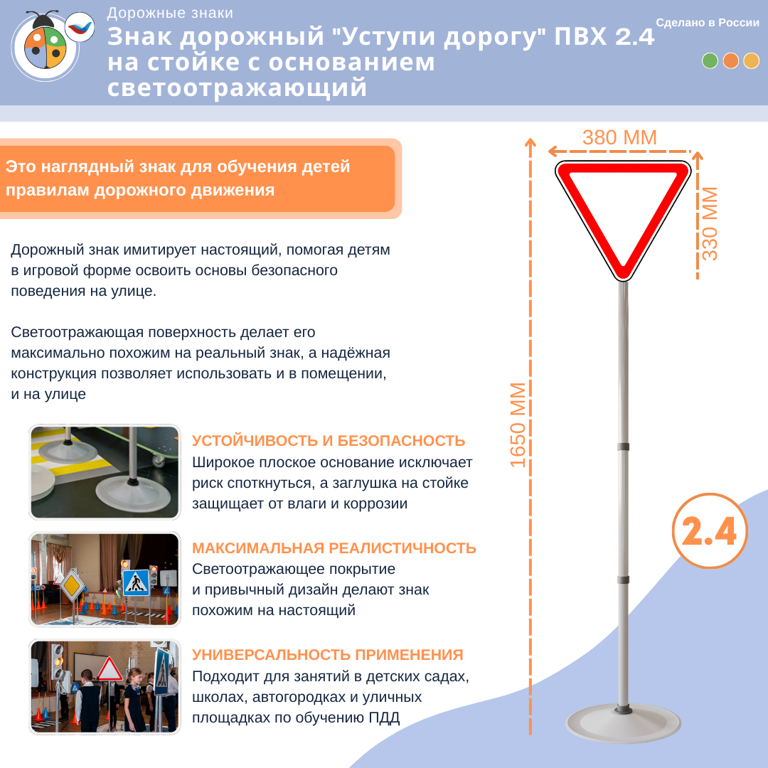 Знак дорожный "Уступи дорогу" ПВХ 2.4 на стойке с основанием светоотражающий