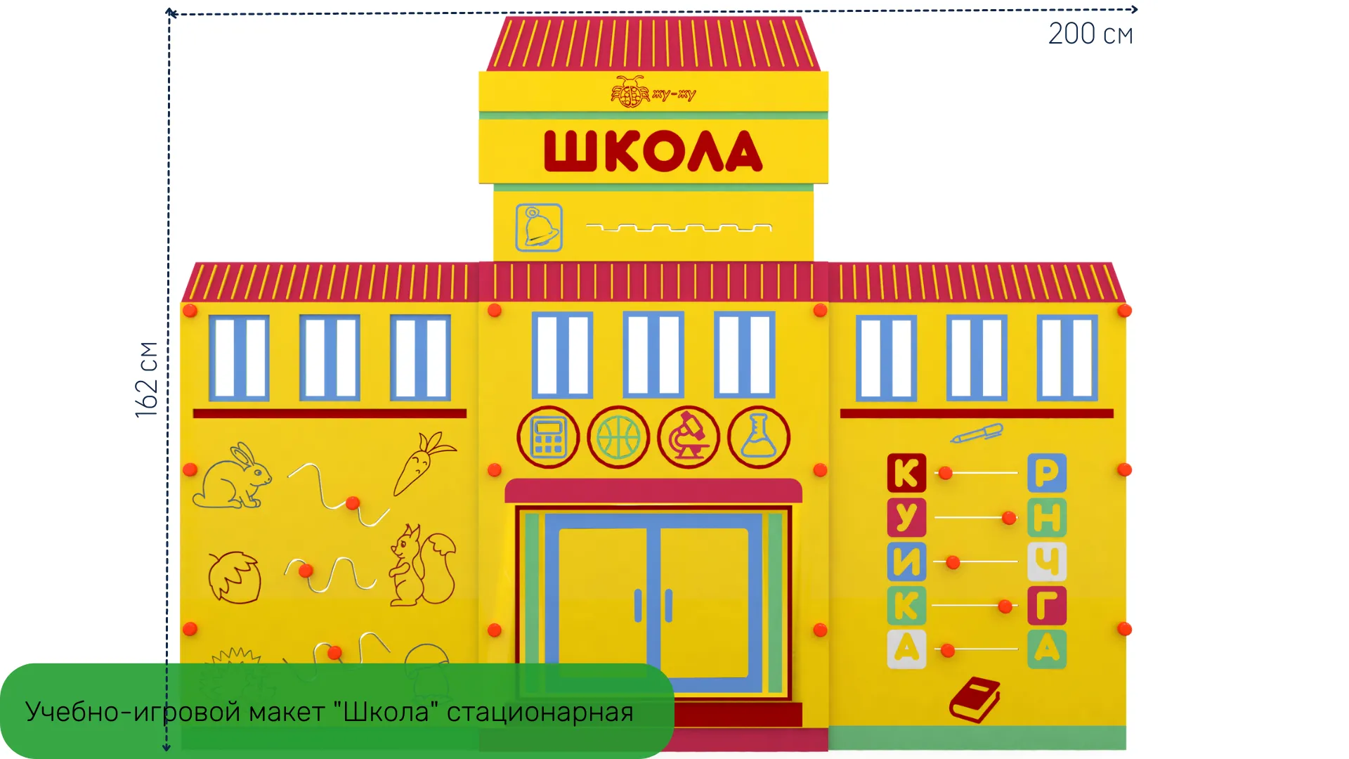 3. Учебно-игровой макет "Школа" стационарная - стационарный макет школы дополняет комплект автогородка, позволяет создавать различные дорожные ситуации! На макете расположены бизи-элементы, которые ребенок может крутить, перемещать, тем самым развивая моторику рук.