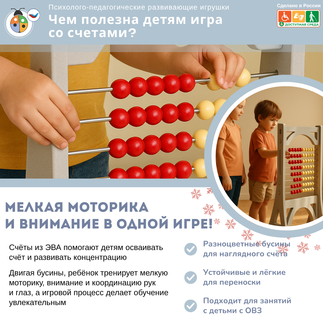 Приобретая "Дидактический Сенсомоторный модуль "Счеты" из эвы" (ЖУ-ЖУ-МР-0112796372), вы получаете: