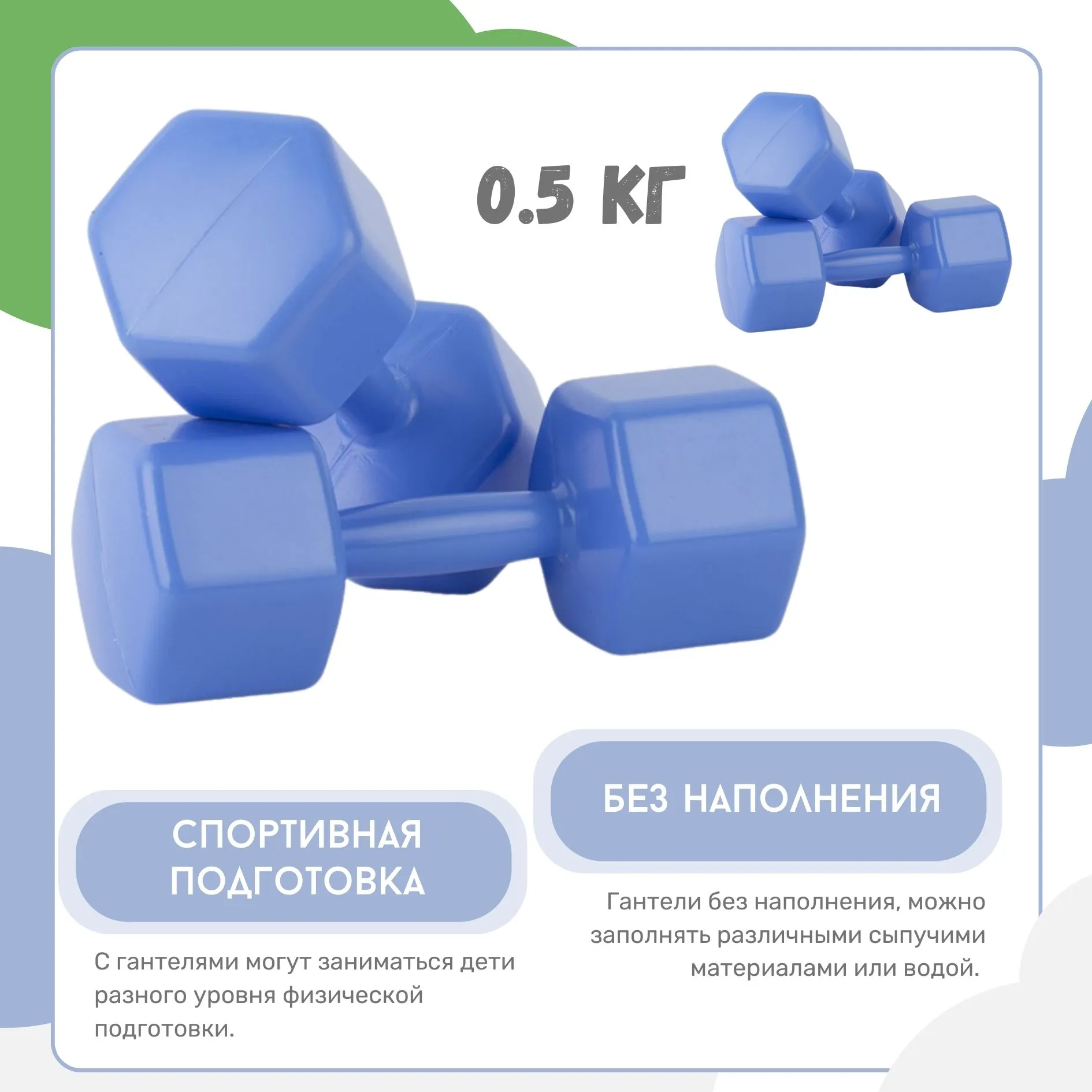 Гантели пластмассовые 0,5 кг 2 шт. (пустые)
