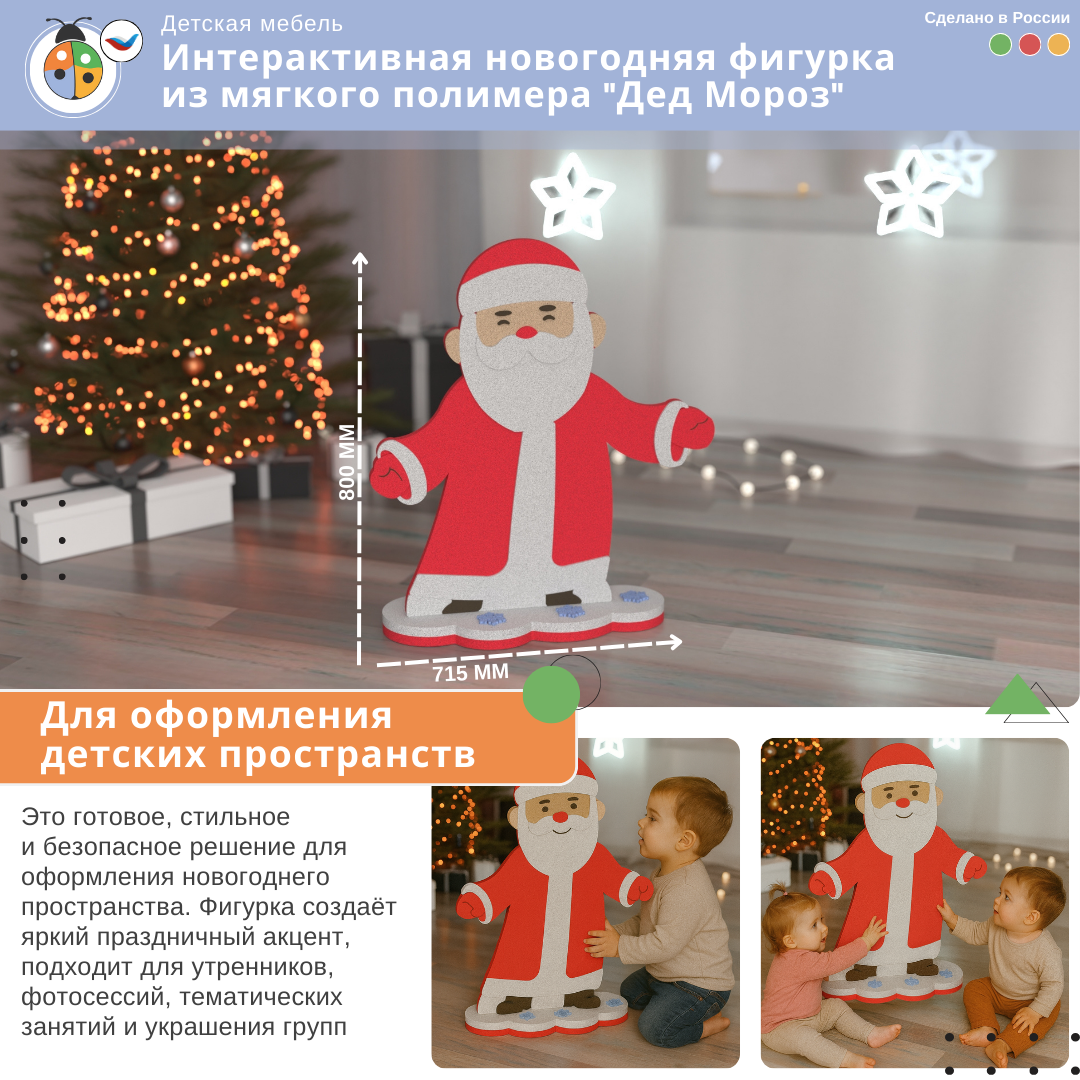 Фигурка "Дед Мороз" — выразительный праздничный элемент, который становится центром новогоднего оформления и привносит ощущение настоящего чуда, создавая место, где дети ждут подарков, делают снимки и погружаются в волшебство.