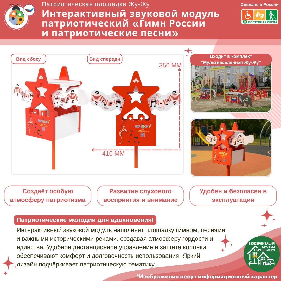 Элемент предназначен для воспроизведения патриотической музыки на площадке.