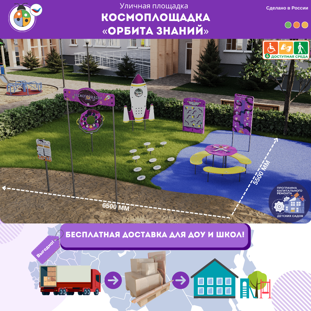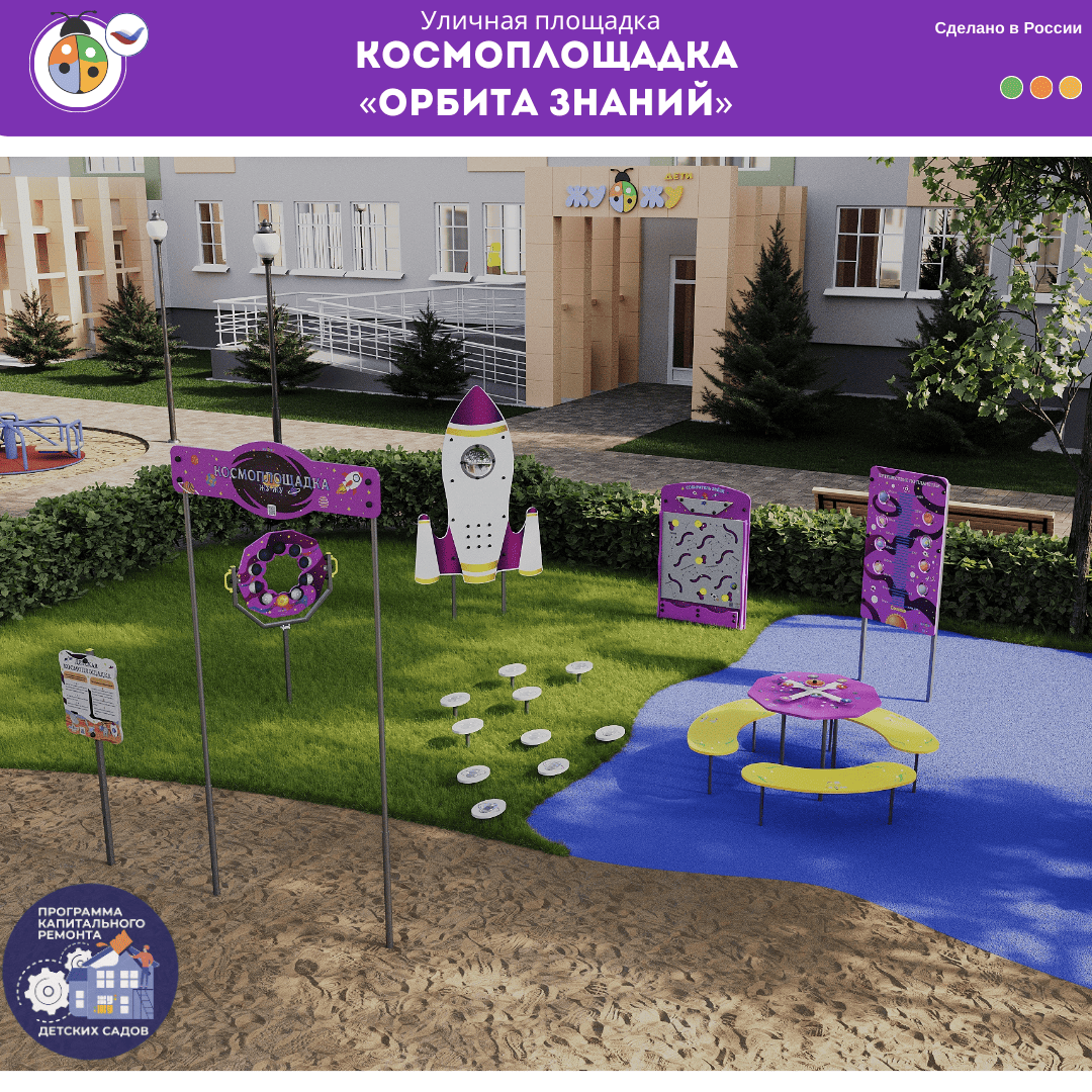 Космоплощадка ЖУ-ЖУ - это уличная площадка, которая соответствует ФГОС и стандартам ФОП ДО, формирует образовательную среду в учебном учреждении, а ее яркий дизайн украшает любую местность!