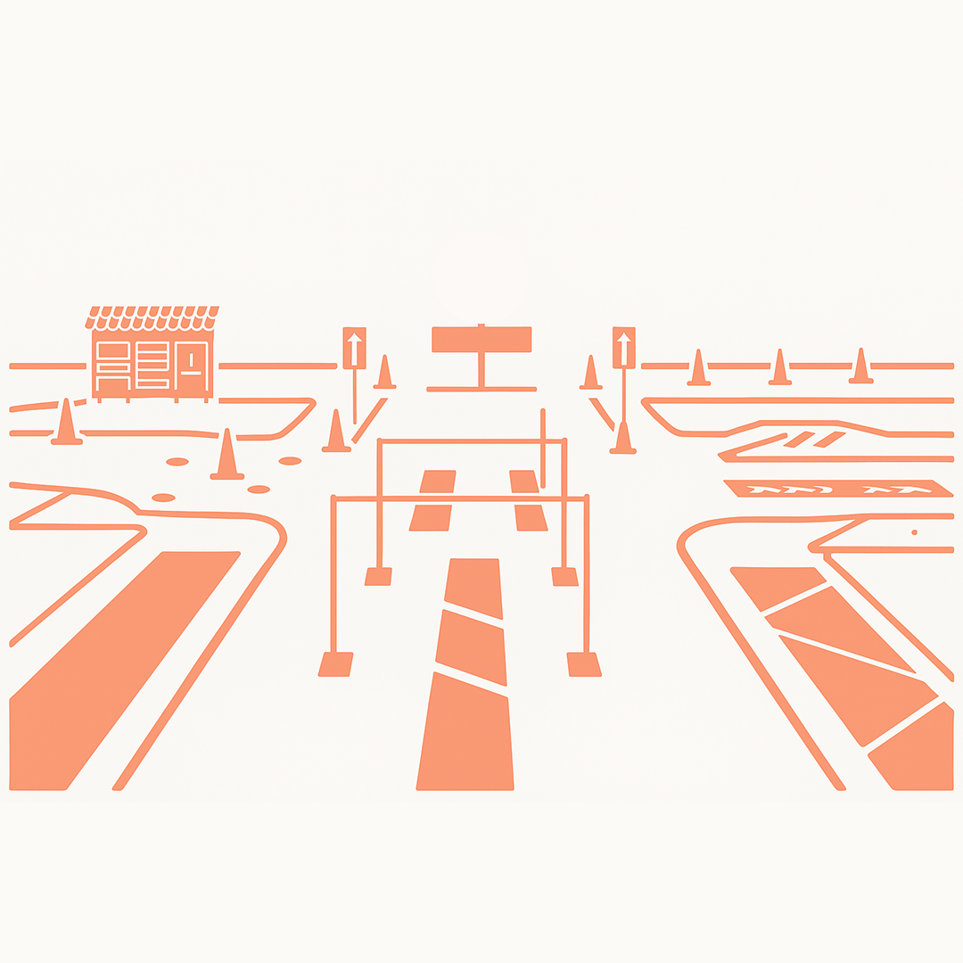 Это готовое решение для тренировок и соревнований по велоспорту. Разнообразные элементы имитируют реальные дорожные условия: подъемы и спуски, повороты, узкие и извилистые участки, проезды под перекладинами и объезд препятствий.