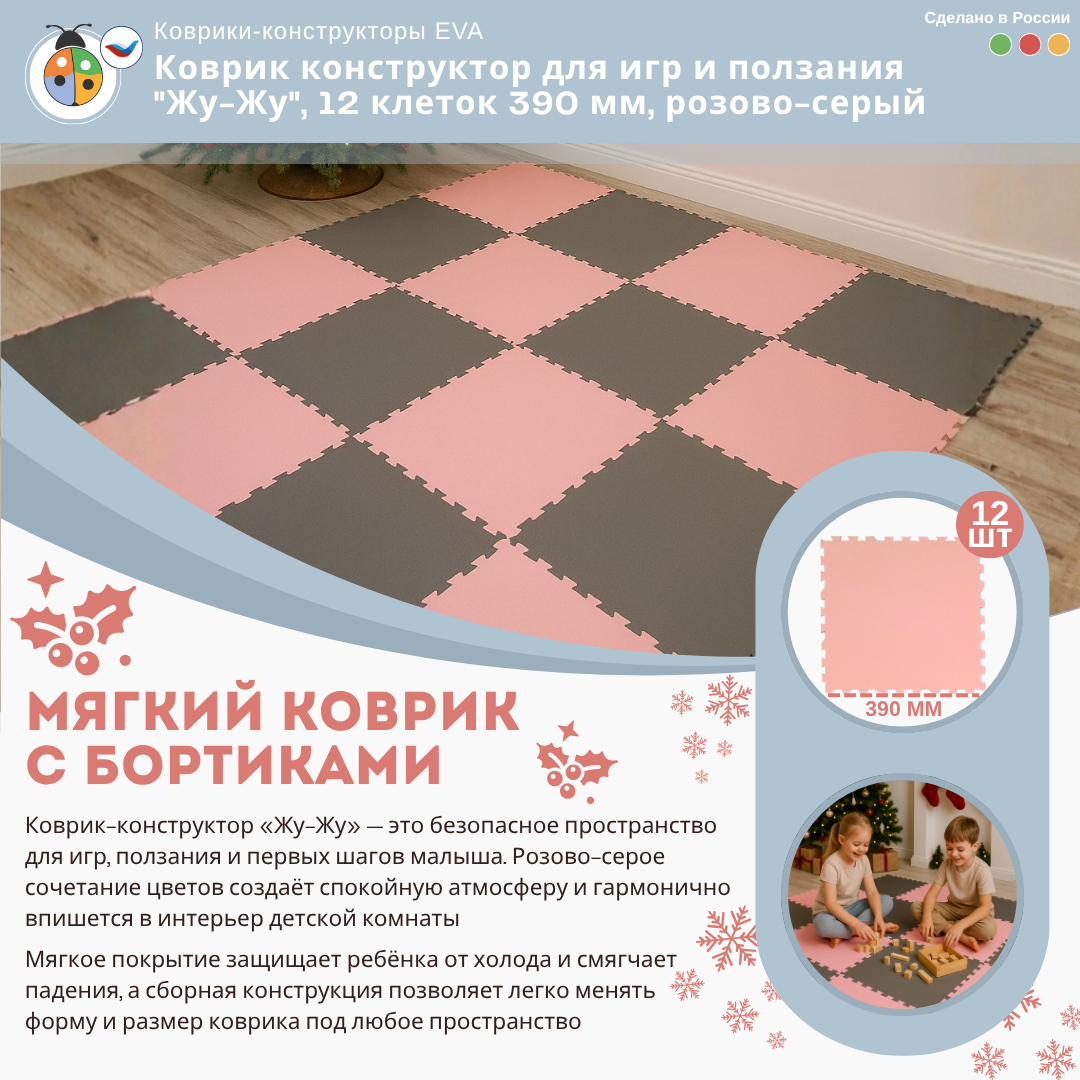 Коврик конструктор для игр и ползания "Жу-Жу", 12 клеток 390 мм, розово-серый— это отличный выбор для создания безопасной и комфортной игровой зоны для малышей. Такой коврик обеспечивает мягкую поверхность для игр и ползания, а также добавляет стильный акцент в интерьер детской комнаты.