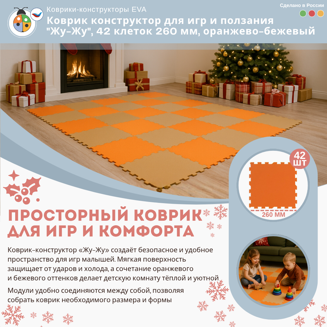 Коврик конструктор для игр и ползания "Жу-Жу", 42 клеток 260 мм, оранжево-бежевый — это отличный выбор для создания безопасной и комфортной игровой зоны для малышей. Такой коврик обеспечивает мягкую поверхность для игр и ползания, а также добавляет стильный акцент в интерьер детской комнаты.