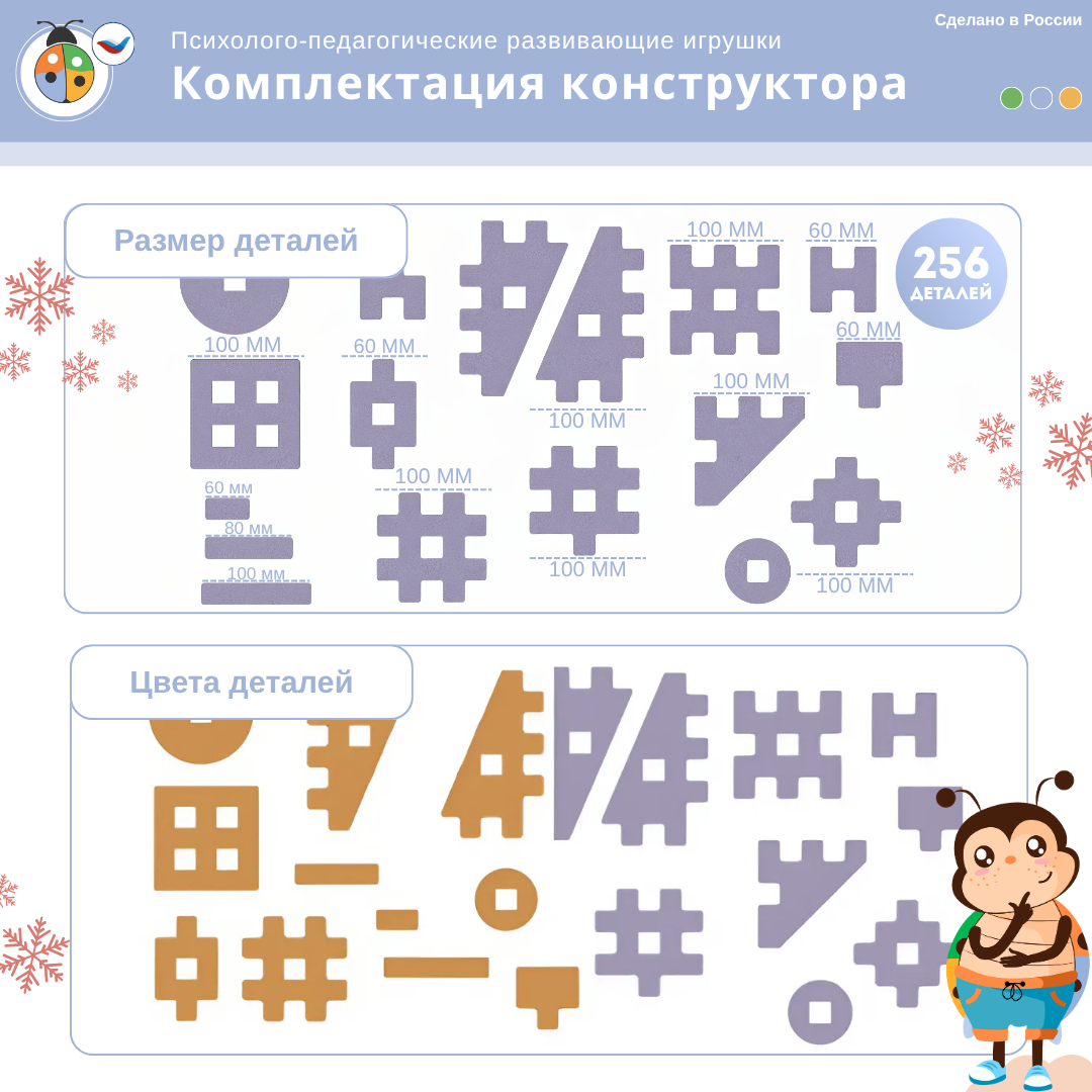 Мягкий материал делают конструктор безопасным для маленьких детей, снижая риск травм при игре.
