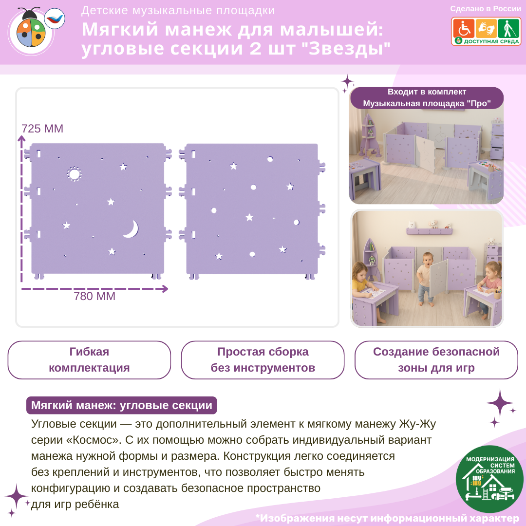 Мягкий манеж для малышей: угловые секции 2 шт "Звезды", дизайн-серия "Космос" — вариант угловых секций манежа.
