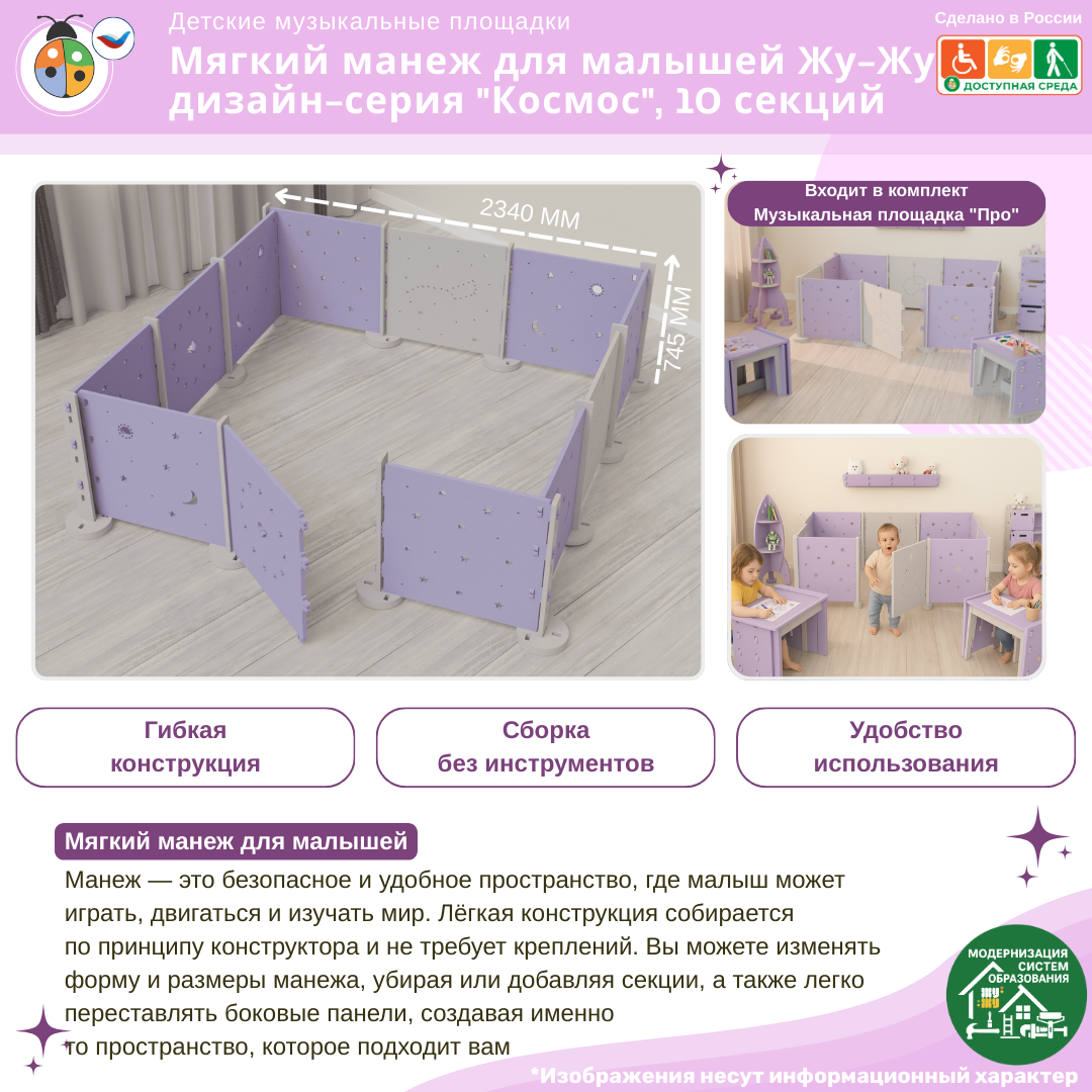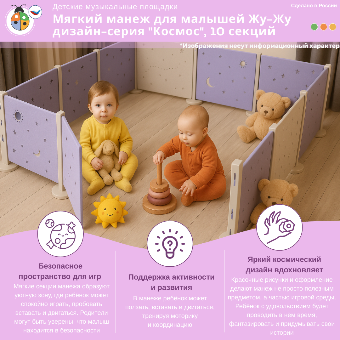 3. Мягкий манеж для малышей: стойка, дизайн-серия "Космос" - 10 шт.