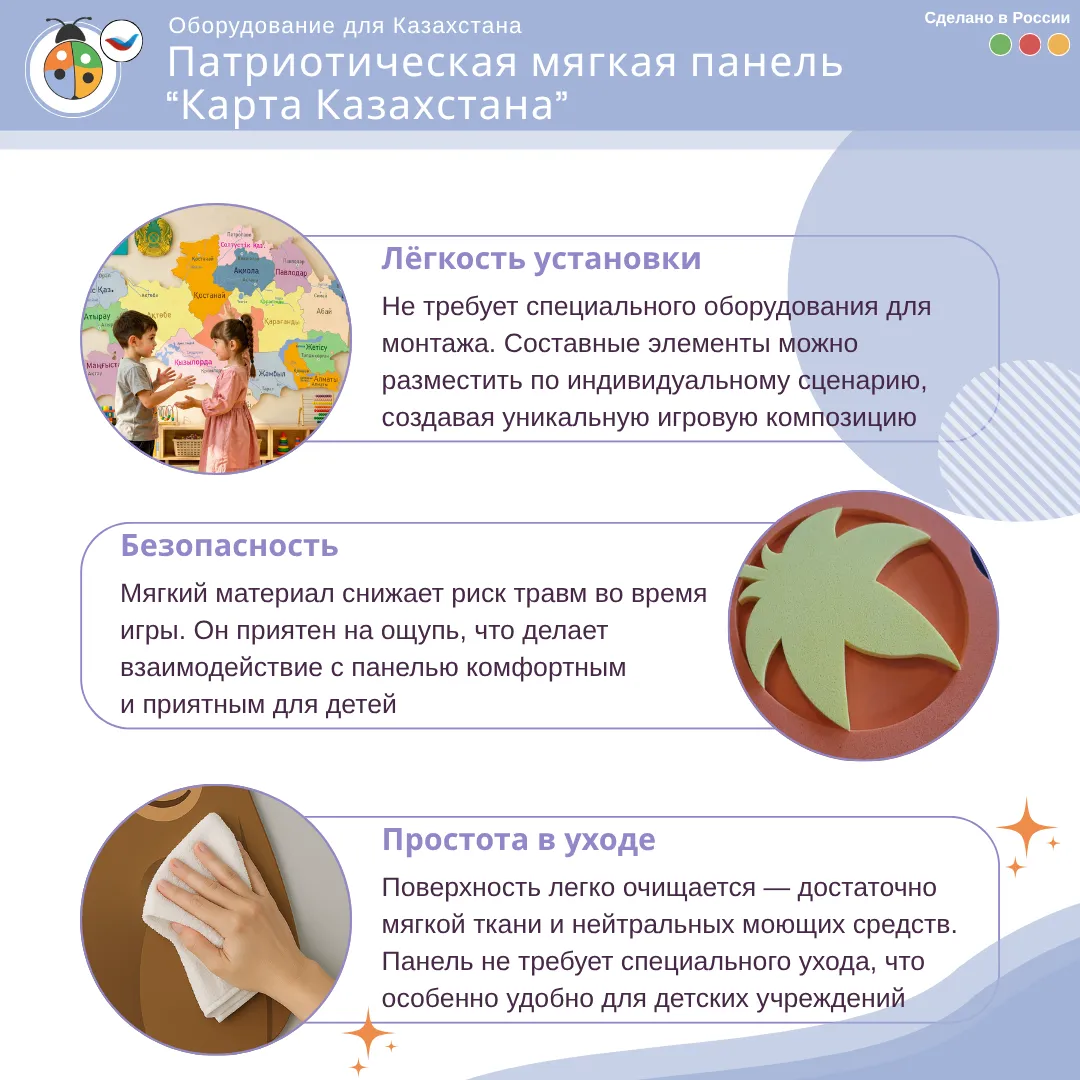 Приобретая развивающую настенно-напольную панель мобильную "Патриотические символы" макси, комплект, вы получаете: