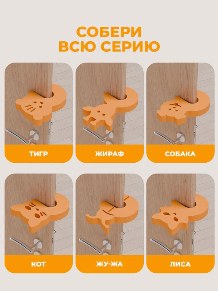 Стоппер — яркий и безопасный помощник, который защитит маленьких непосед от прищемления пальчиков и неожиданных хлопков дверей.