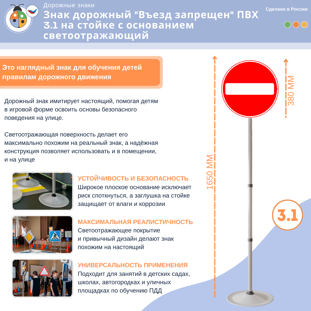 Знак дорожный "Въезд запрещен" ПВХ 3.1 на стойке с основанием светоотражающий